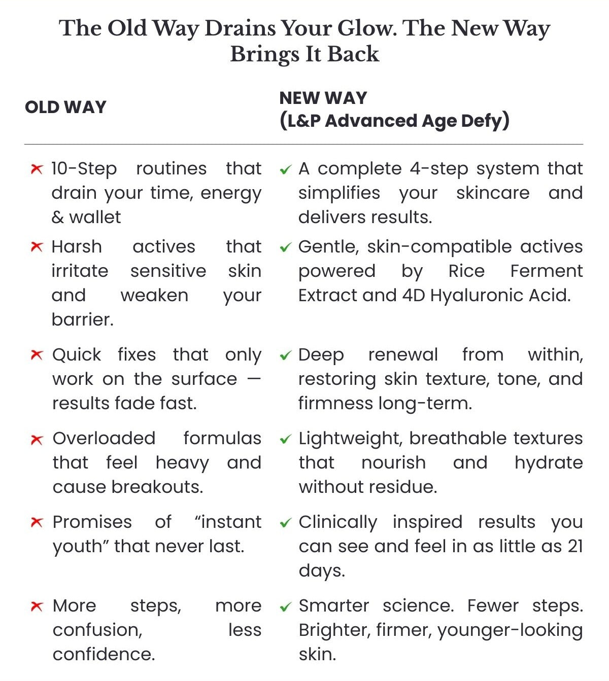 You've tried countless serums & creams - yet dullness, fine lines & dryness keep coming back.
