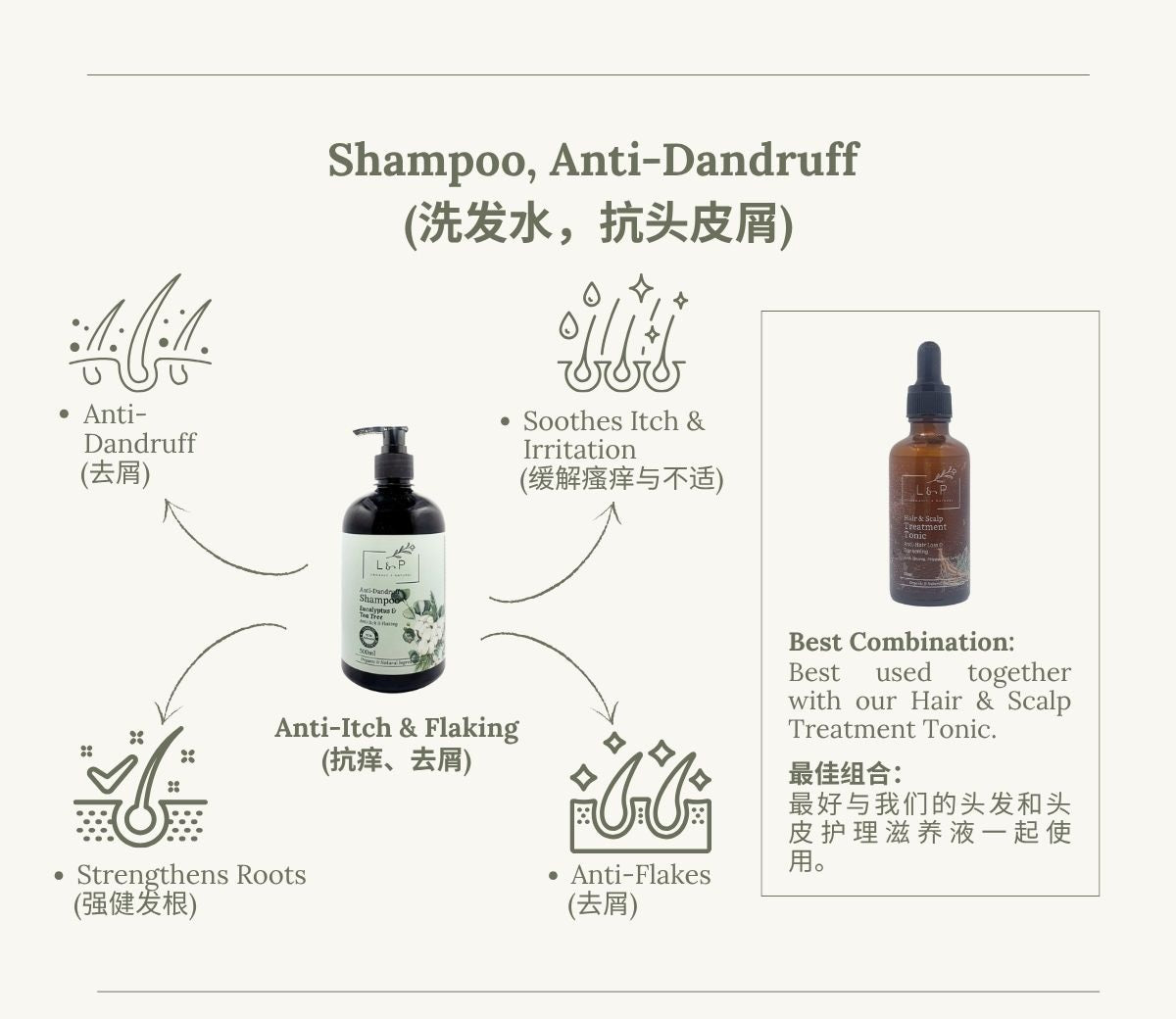 L&P 有机天然去屑洗发水为你带来温和、自然的解决方案,舒缓头皮、恢复平衡,让秀发洁净清爽,不见头屑烦恼。