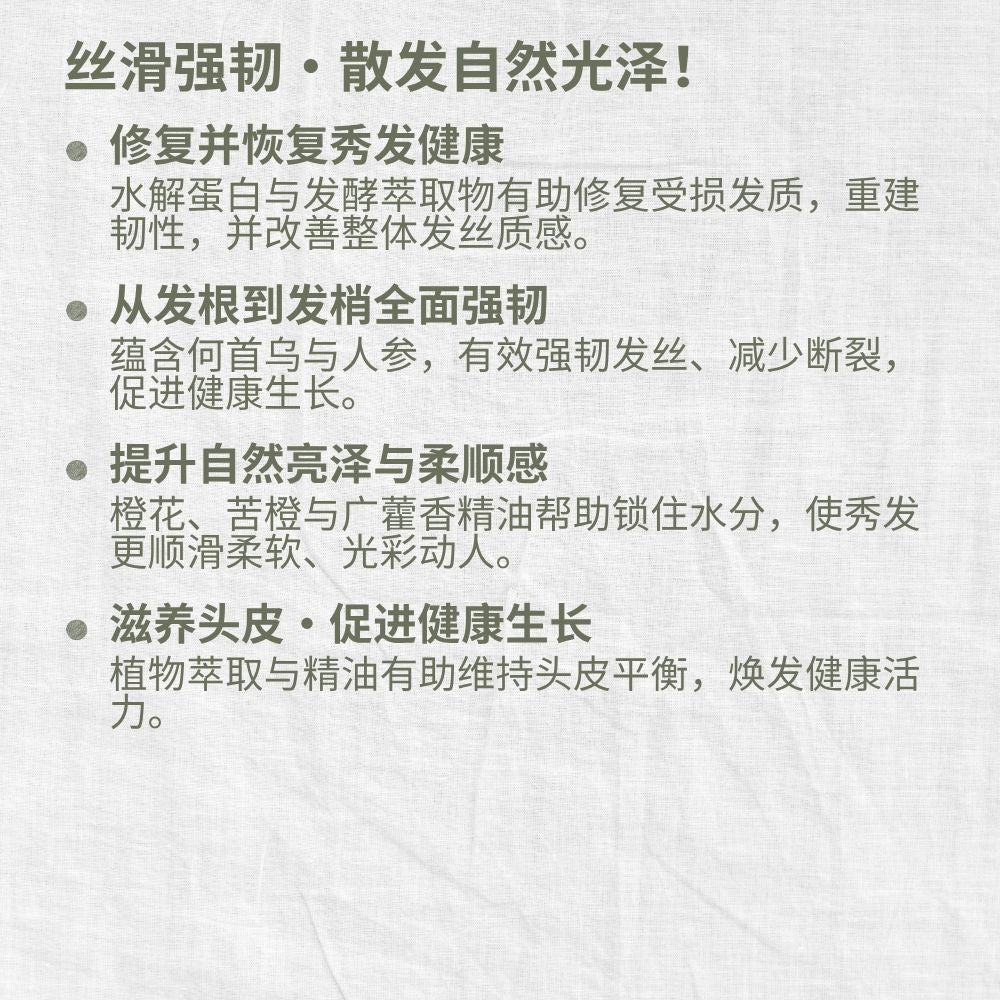 质地轻盈不油腻,深层滋养头皮,展现自然健康光泽。