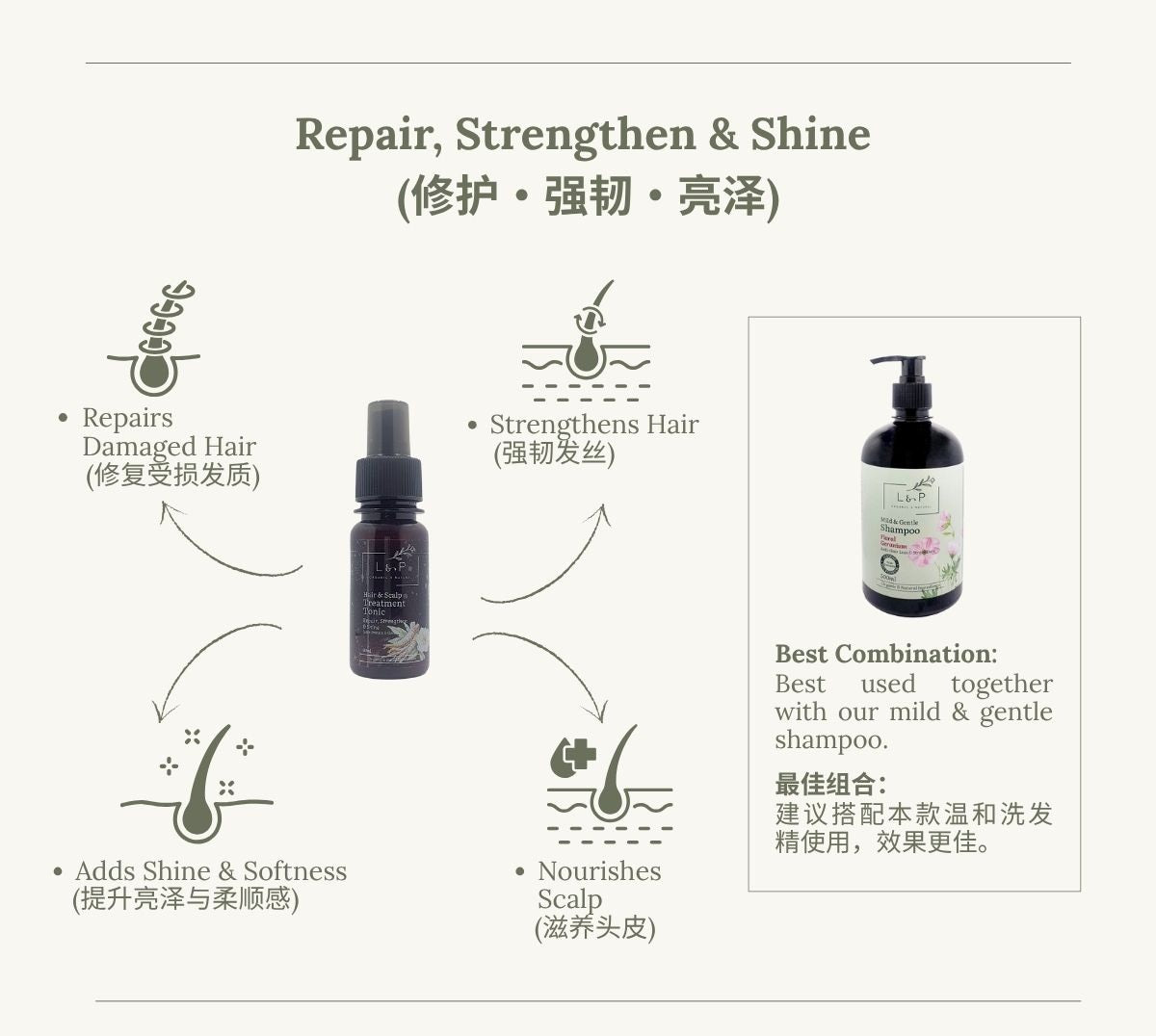 L&P Organic and Natural Hair & Scalp Treatment Tonic Spray is designed to restore natural shine, repair and strengthen the hair.