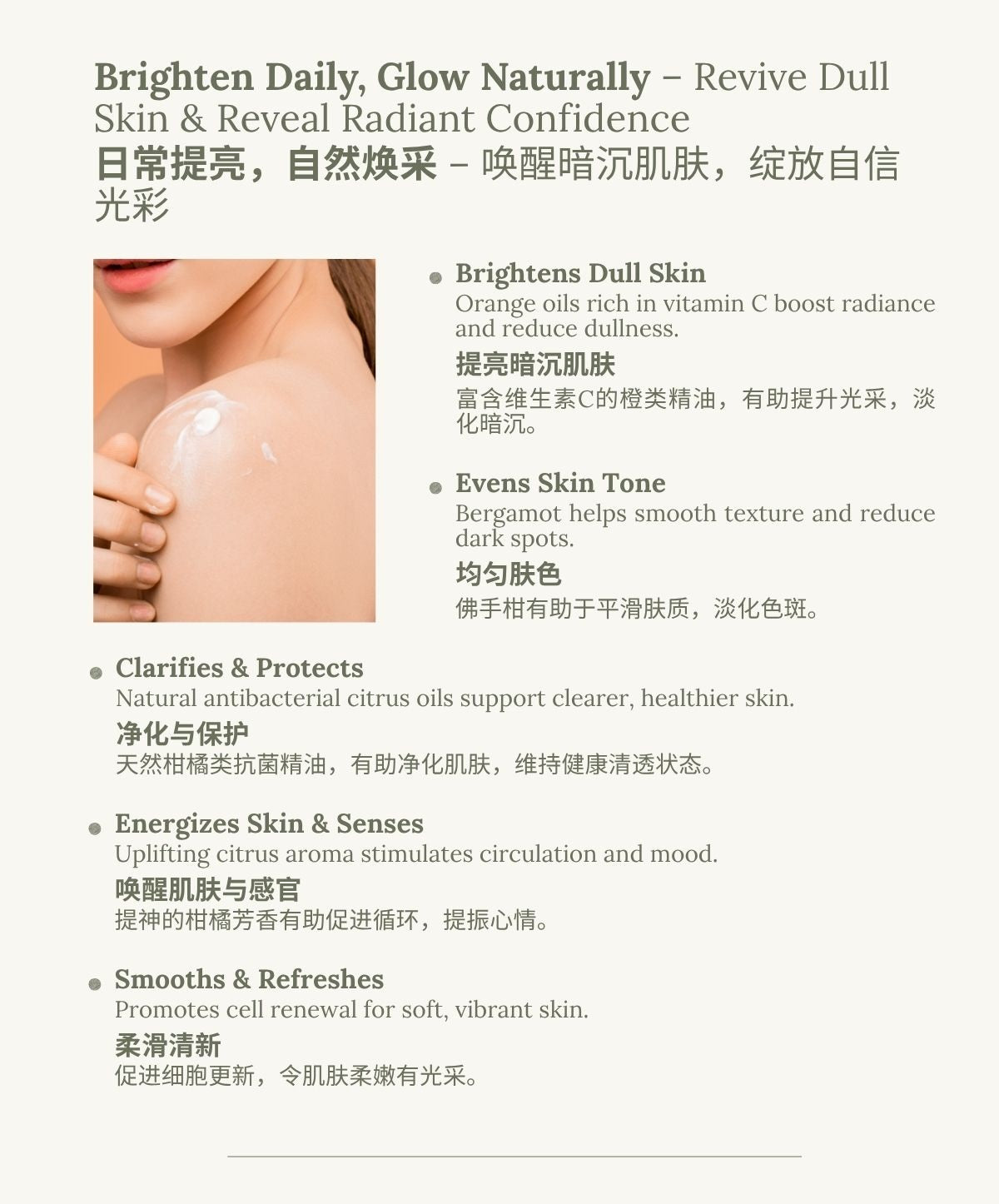 Naturally brightening & revitalizing, it brings out your skin's inner glow - perfect for your morning ritual or post-showering pampering.