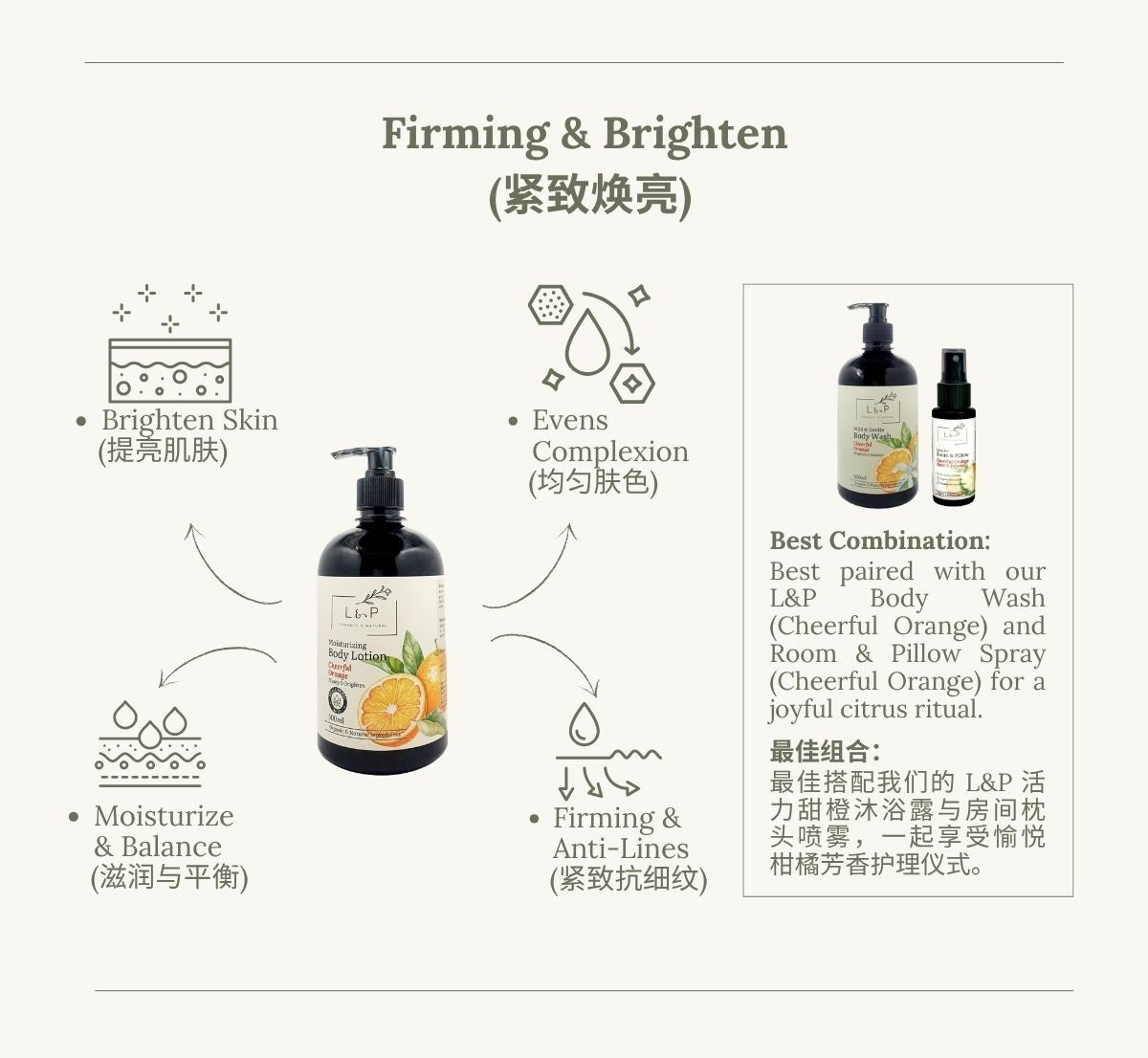 L&P Organic & Natural Moisturizing Body Lotion (Cheerful Orange) is your daily skin-brightening boost - nourishing deeply to reveal radiant, even-toned skin with every use.