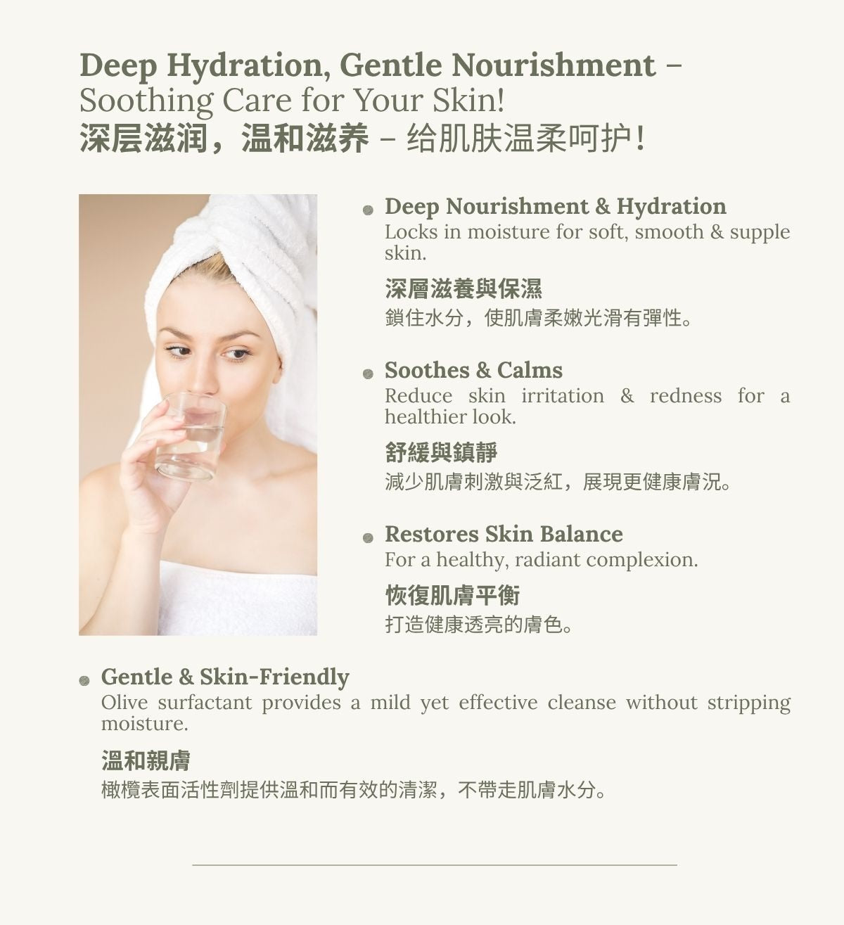 100% 纯净有机 | 无硫酸盐 | 温和亲肤 | 适合日常使用,包括青少年和敏感肌人群