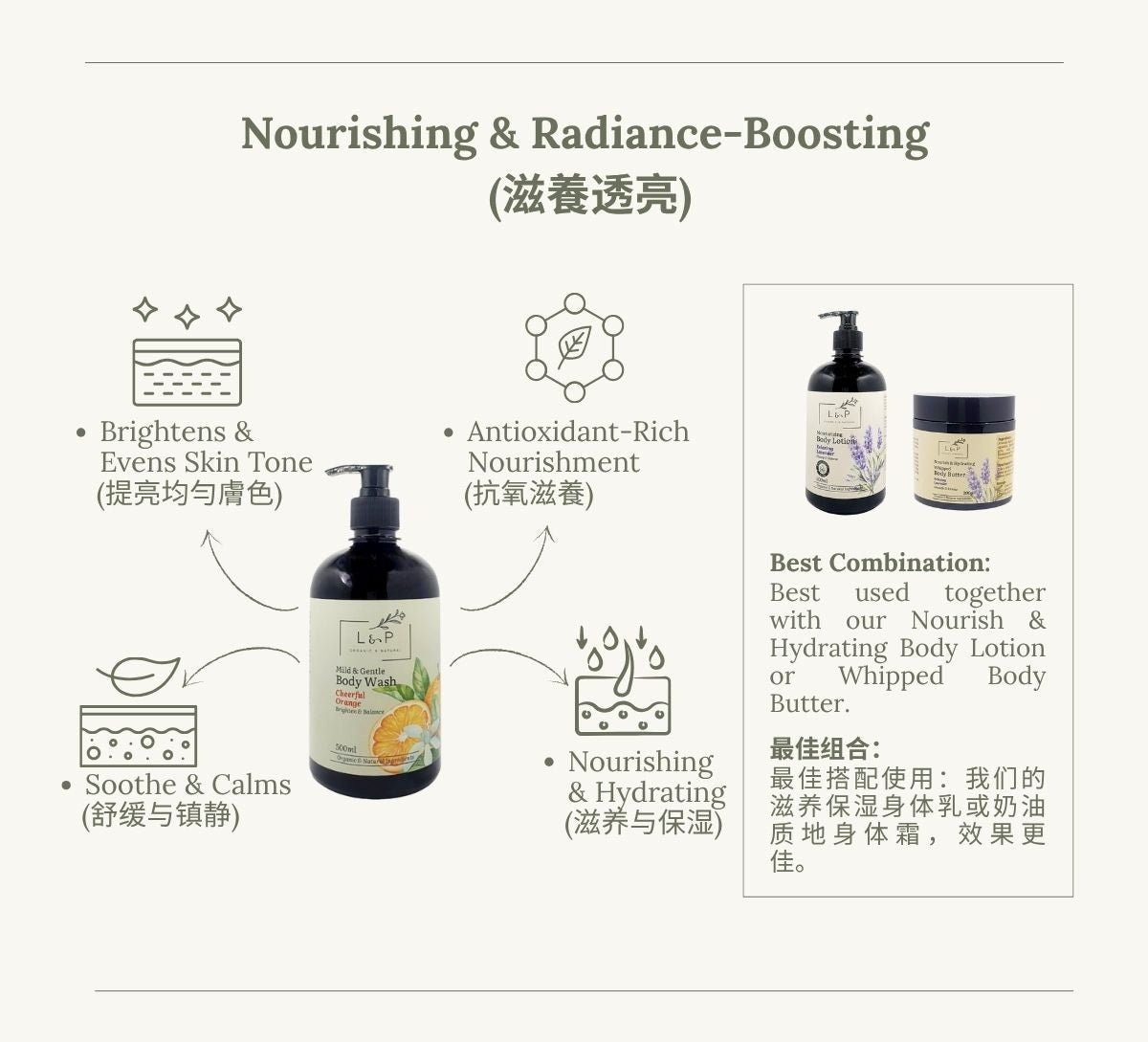L&P Organic & Natural Mild & Gentle Body Wash (Cheerful Orange) brings joy to your daily routine while keeping skin soft, hydrated & healthy.