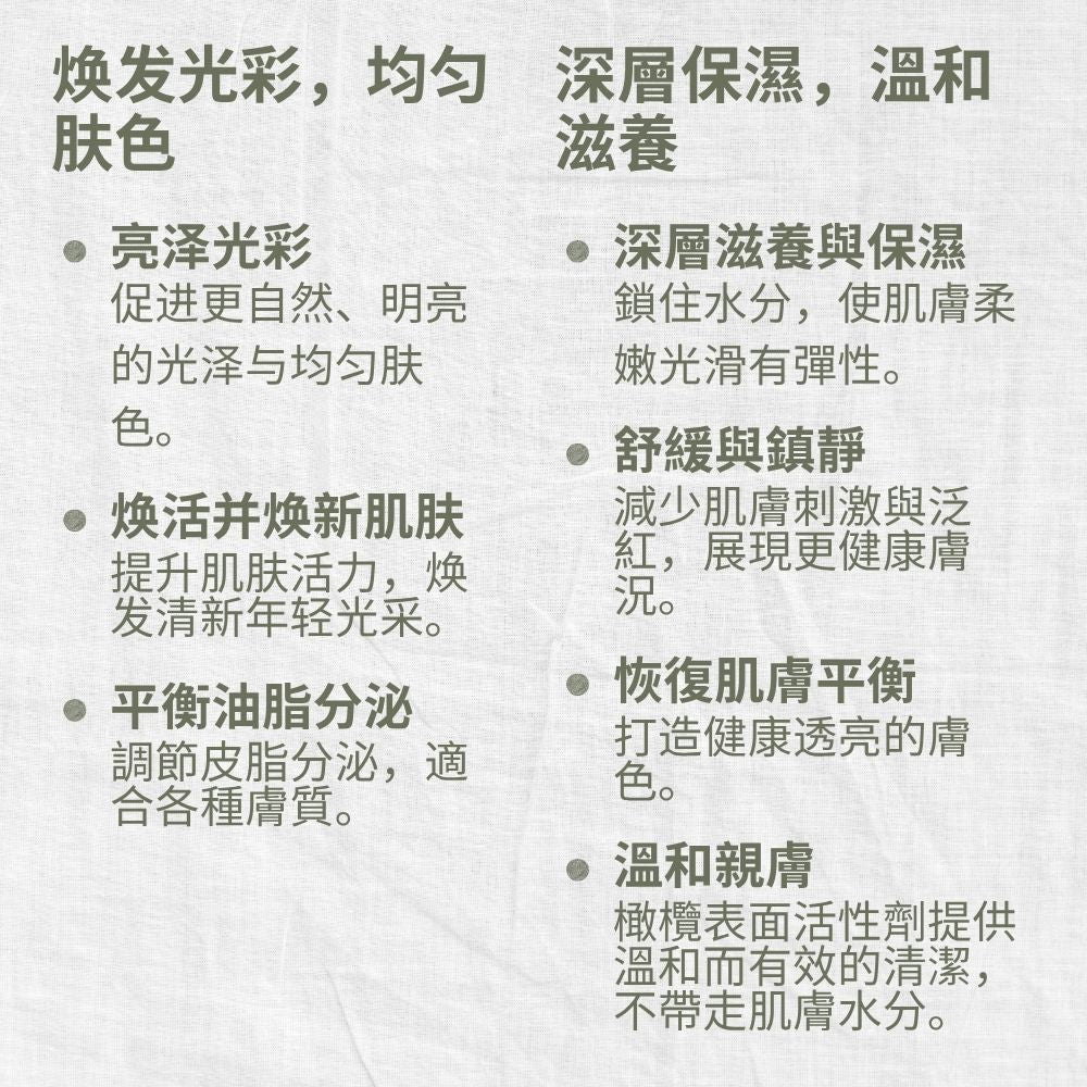 温和保湿,洁净同时打造柔嫩、健康、亮采肌肤。