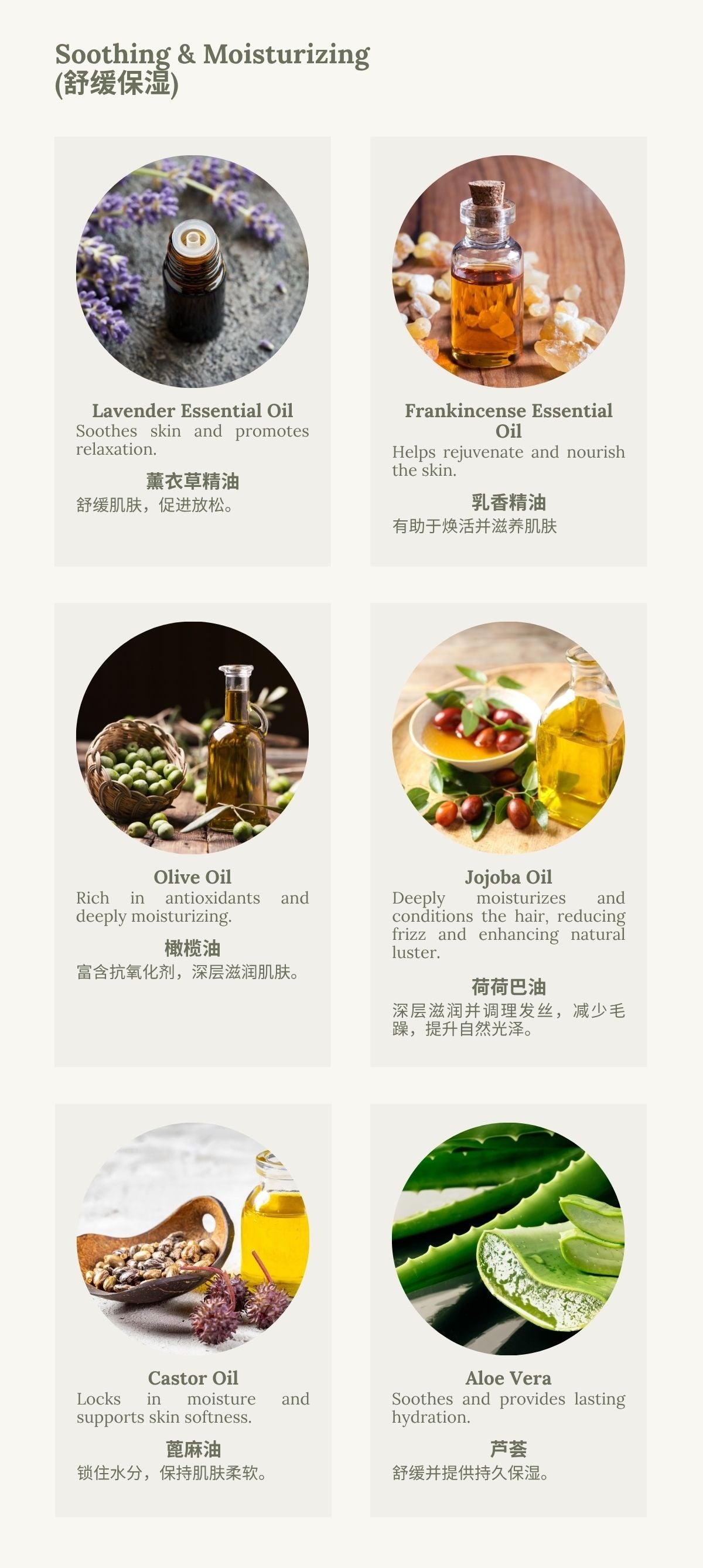 温和保湿、舒缓放松 —— 全家适用,适合婴幼儿与敏感肌肤。