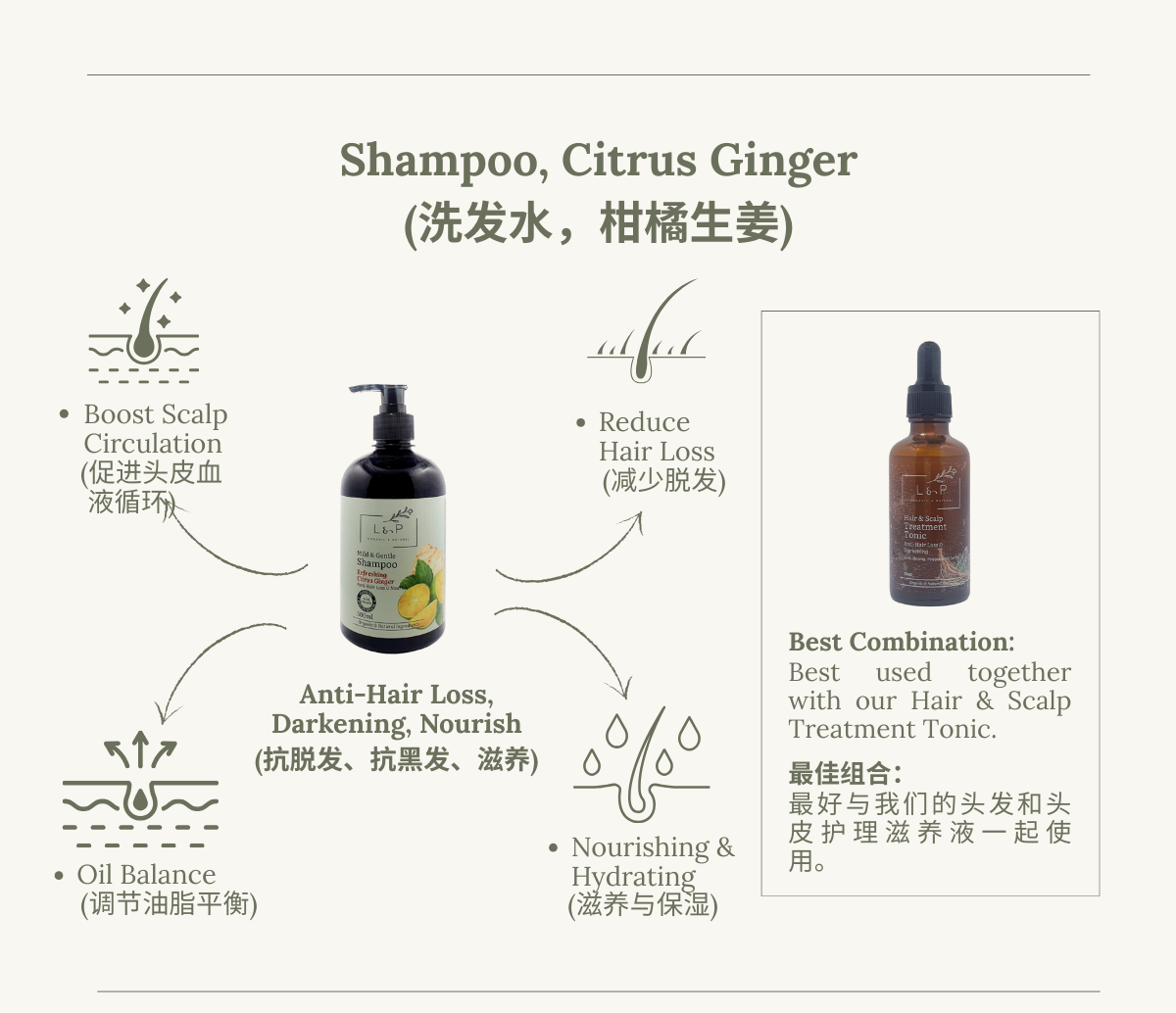 L&P 有机天然柑橘生姜洗发水,唤醒毛囊,强韧发丝,每一次充满活力的清洗都令秀发焕发新生。
