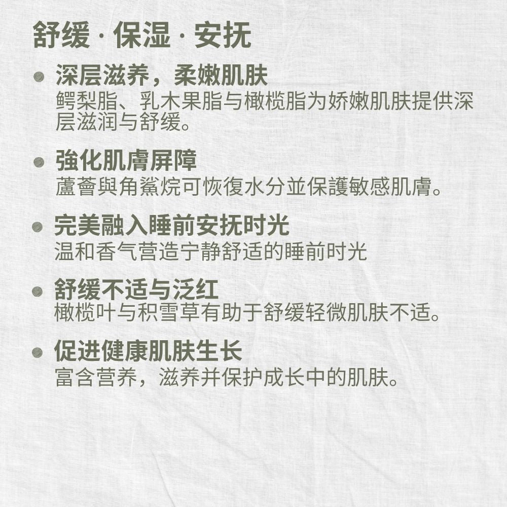*** 沐浴后使用效果最佳,帮助肌肤锁水并为睡眠做好准备