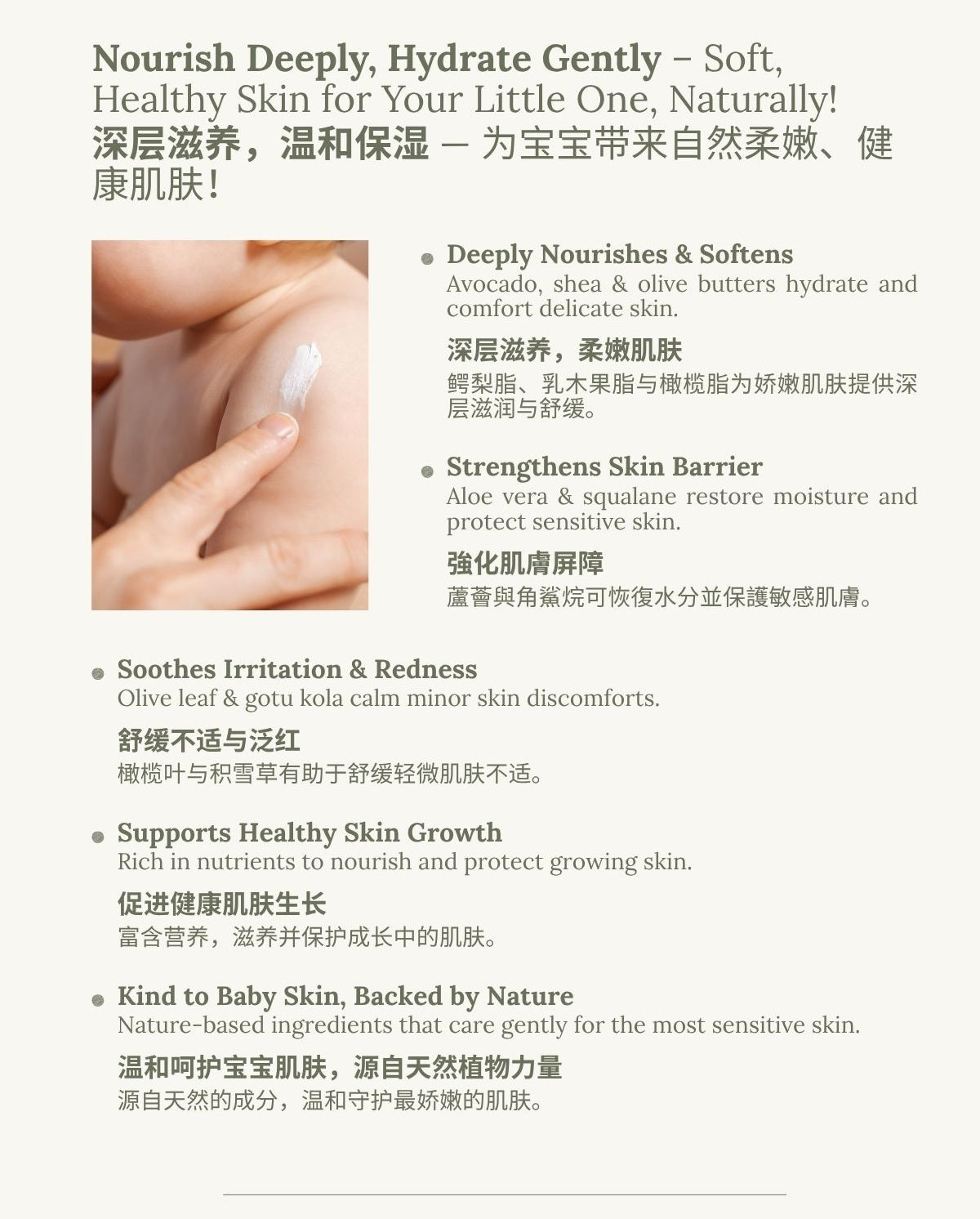 ***皮肤科友好,采用认证有机与 COSMOS 标准天然成分,宝宝安心使用,全家都喜爱!
