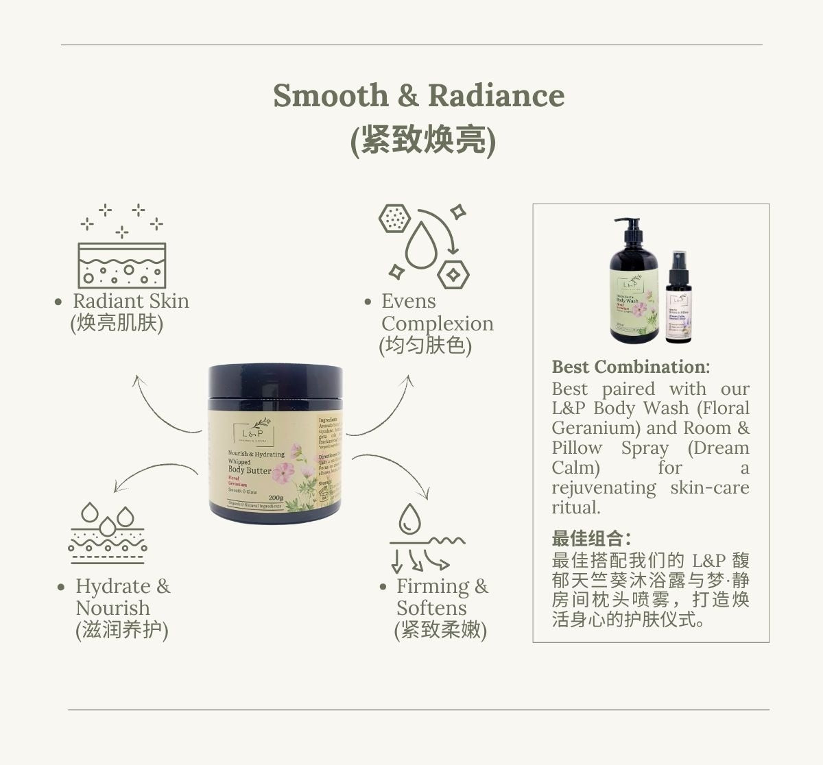 L&P Organic & Natural Nourish & Hydrating Body Butter (Floral Geranium) is your daily ritual for radiant, firmer skin - naturally.