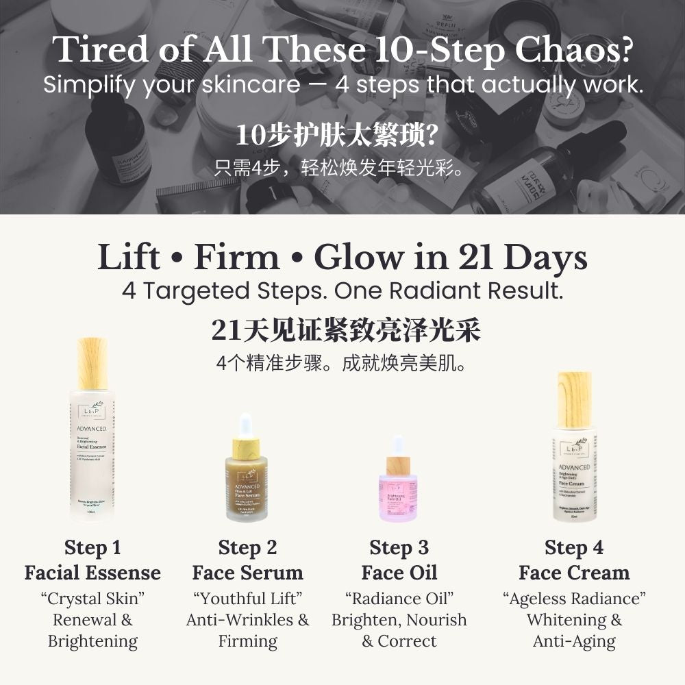 → A full 4-step ritual to renew, lift & brighten for timeless radiance.